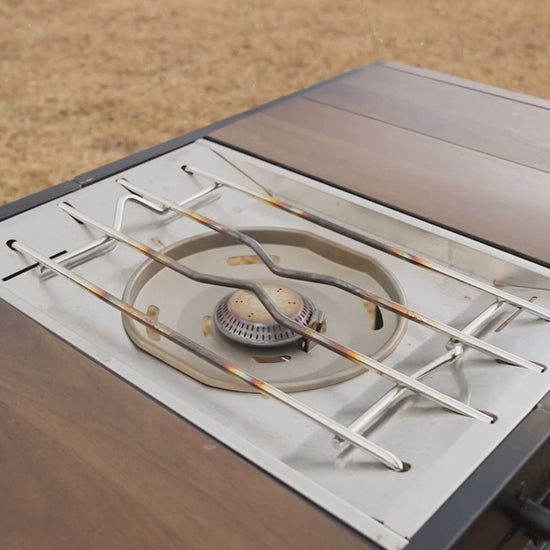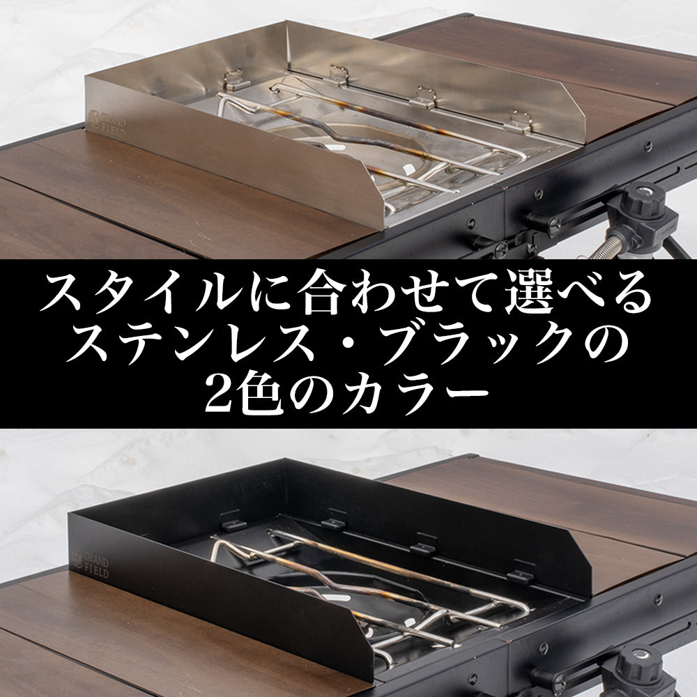 フラットバーナー周辺の風を抑え、炎の安定性を向上させることで、火力低下や調理時間のロスを軽減します。大きなウインドスクリーンは不要。必要な場所だけを守る、専用設計です。